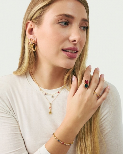 Pendientes de Duran Exquse de la colección Armonía de Colores de plata dorada con cuarzo de colores. Inspirada en la cultura mediterránea, influenciada por sus colores, texturas, calidez y naturaleza. Cada una de sus colecciones tiene un trocito del estilo de vida mediterráneo, espíritu de la marca.