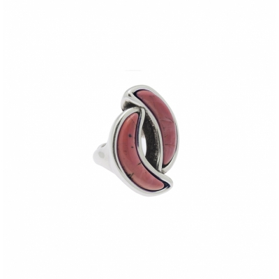 Anillo bañado en plata con el diseño de lunas en tono coral . Un diseño original elaborado artesanalmente en España